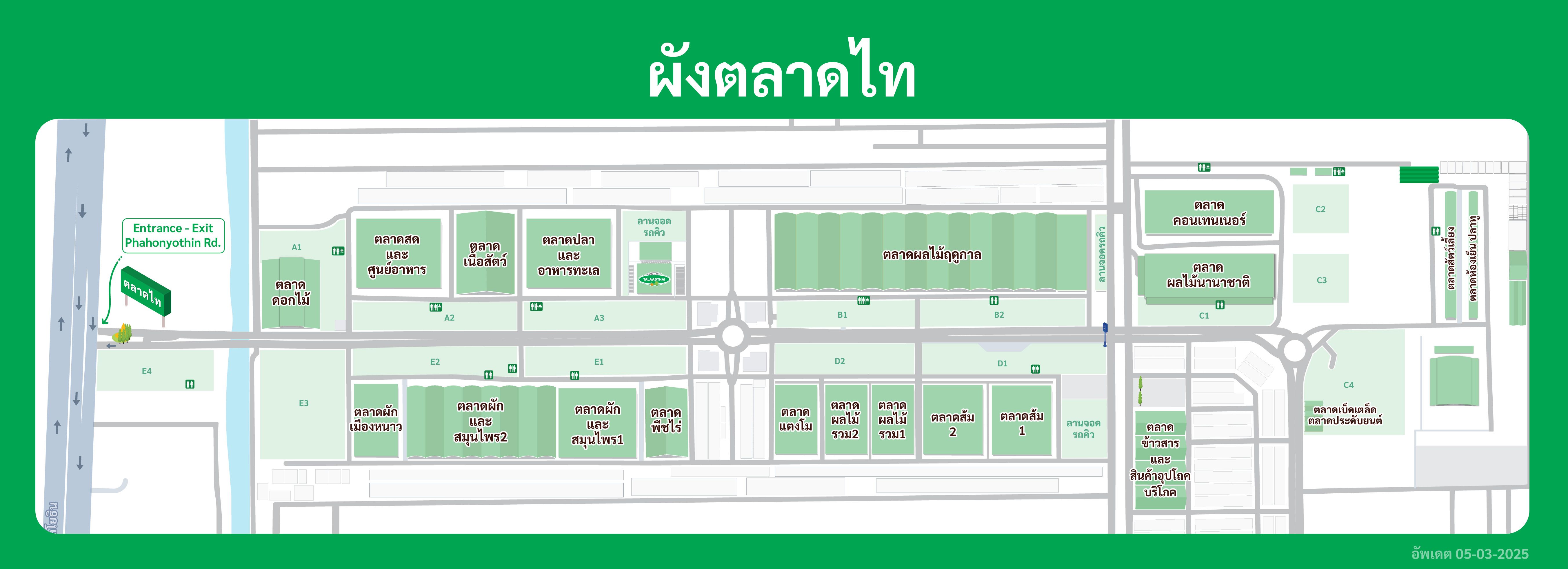หากเดินทางมาจากในตัวเมืองสามารถเลือกเดินทางโดยใช้ทางยกระดับอุตราภิมุข และลงจากทางยกระดับที่ทางออกสุดท้ายใกล้กับโรงกษาปณ์ กรมธนารักษ์ หรือจะเดินทางบนถนนพหลโยธิน (หมายเลข 1) ขาออก และใช้ทางออก 43 ไปยังทางคู่ขนาน เพื่อขึ้นสะพานกลับรถและเตรียมชิดซ้ายเพื่อเลี้ยวซ้ายเข้าสู่ตลาดไท